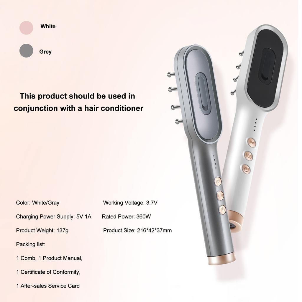 многофункциональный: Расческа для нанесения на кожу головы не только способствует впитыванию эфирных масел для ухода за волосами, но также обеспечивает вибрацию, расслабляющую мышцы, снимающую стресс и помогающую улучшить сон.. Расческа для волос может ухаживать за волосяными фолликулами с антистатической функцией, восстанавливать поврежденные волосы, расслаблять кожу головы физически и умственно, а также ухаживать за кожей головы.