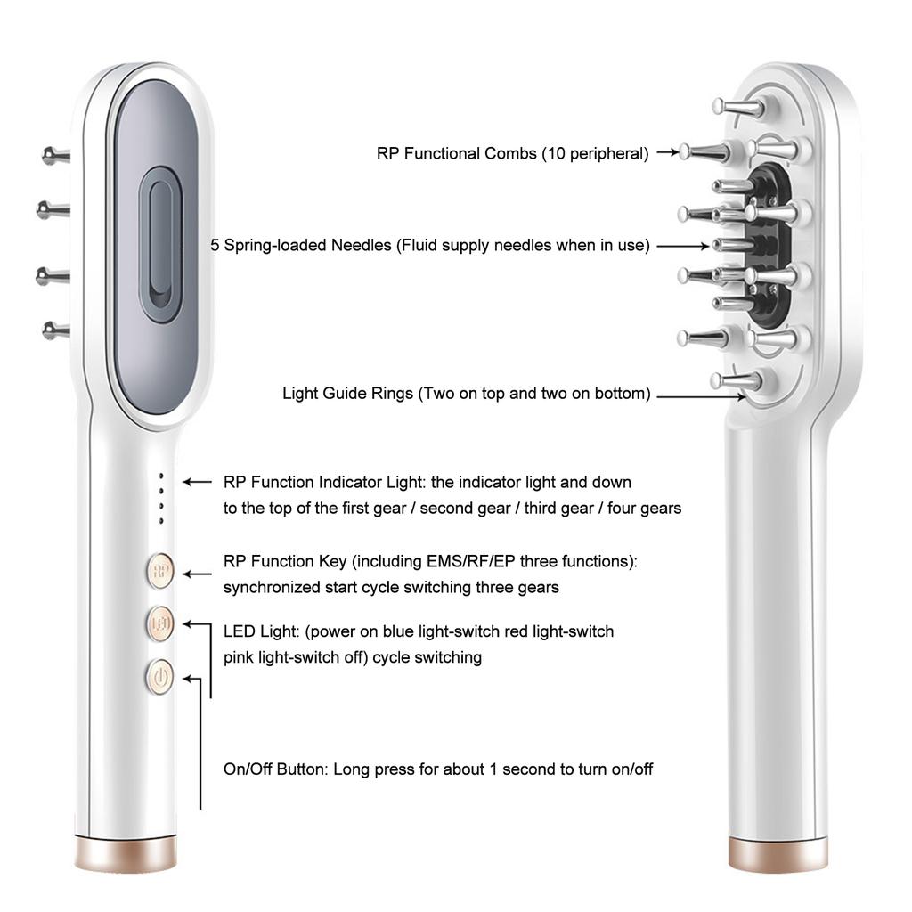 Съемный резервуар для воды: Съемный резервуар для воды независимой конструкции, удобный для извлечения и загрузки питательной жидкости и эссенции для волос. Просто переместите его на голову, и эфирное масло для ухода за волосами достигнет корней волос.. Наносите равномерно, экономьте лекарства, просты в использовании и впитывании.