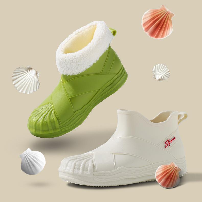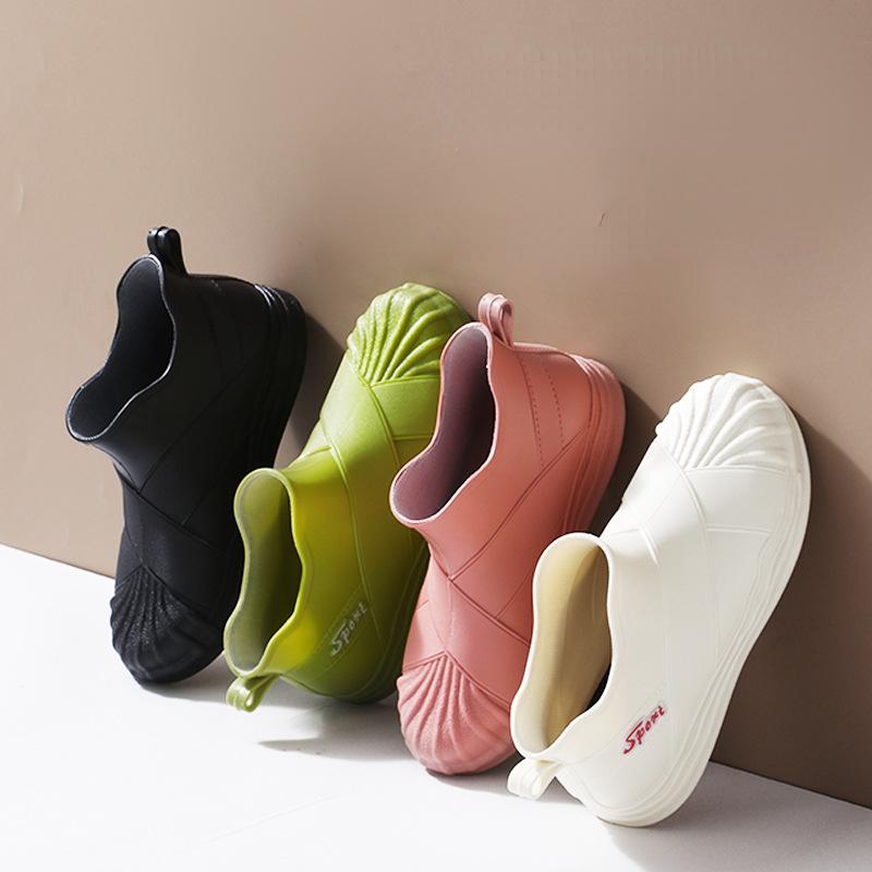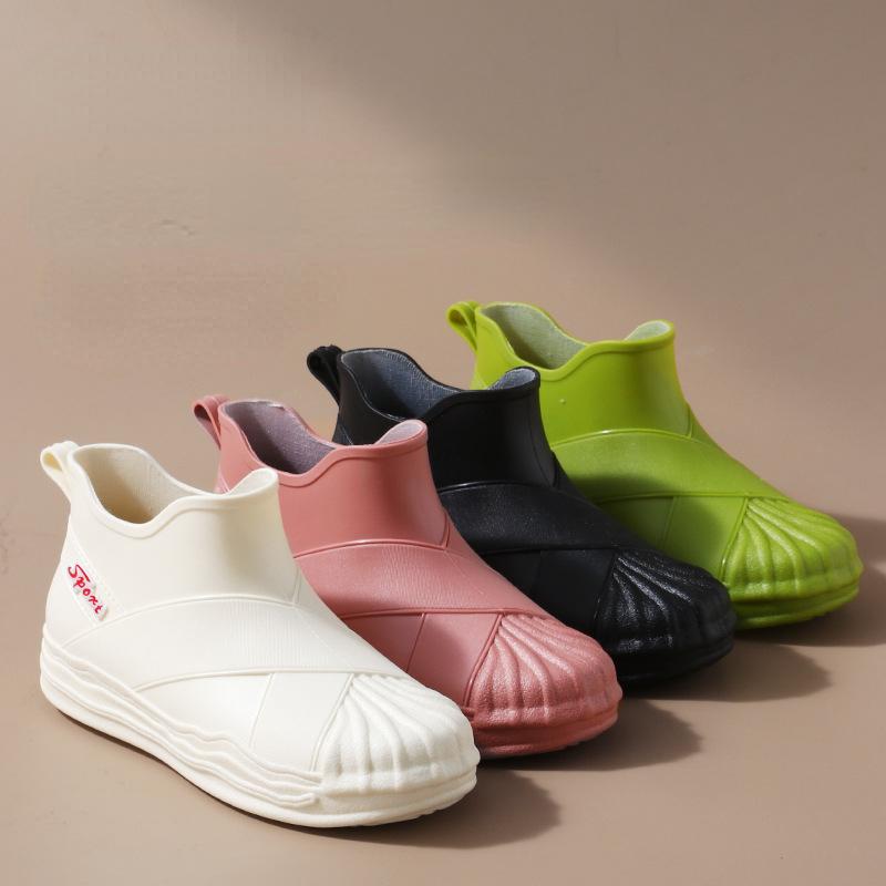 Женские короткие противоскользящие водонепроницаемые дождевые туфли на толстой подошве