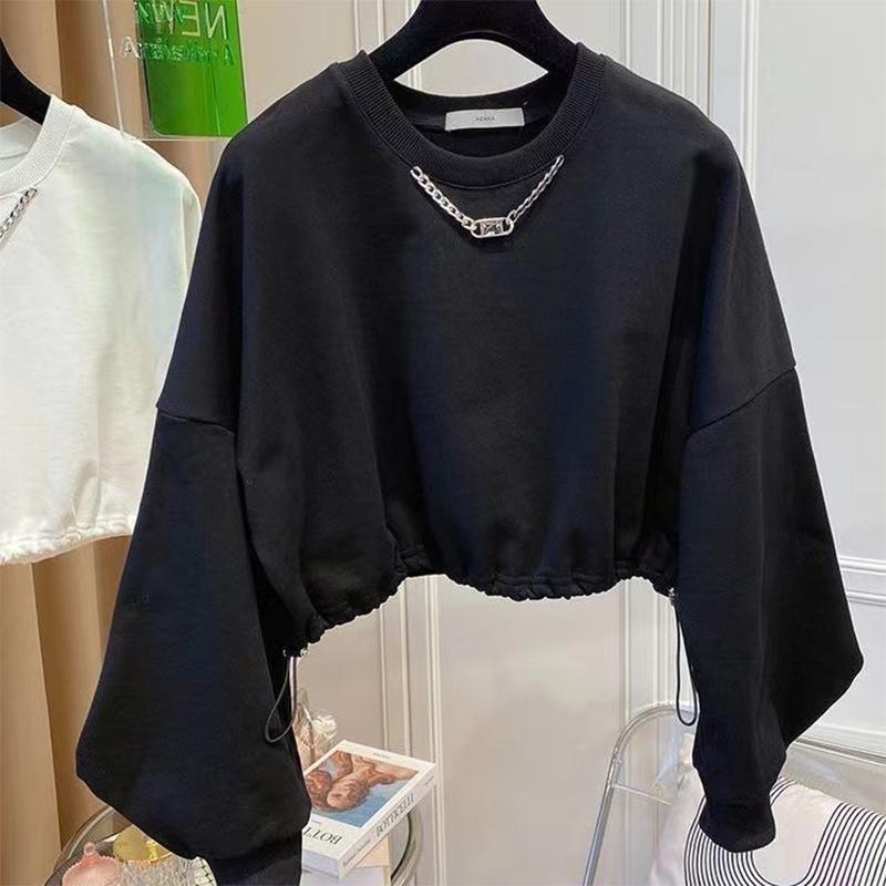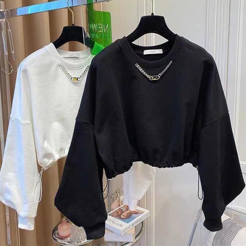 Толстовка женская короткая, тонкая, со свободным шнурком и круглым вырезом