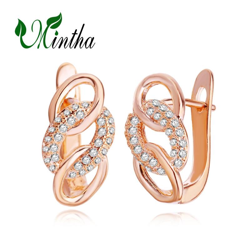 Серьги-клипсы MINTHA, модные модные украшения, полые серьги-гвоздики с кубическим цирконием для женщин, серьги цвета розового золота