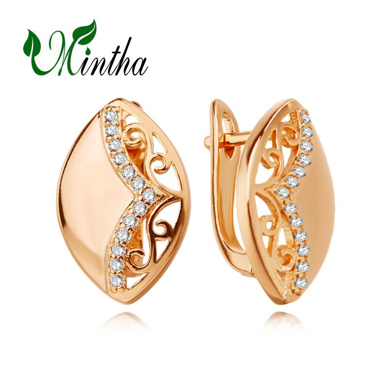 Серьги-клипсы MINTHA, модные модные украшения, серьги-гвоздики с кубическим цирконием для женщин, серьги цвета розового золота
