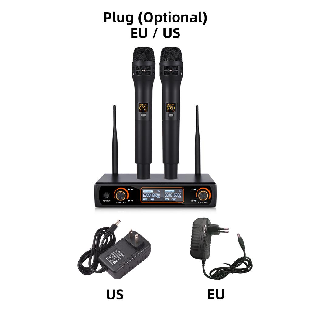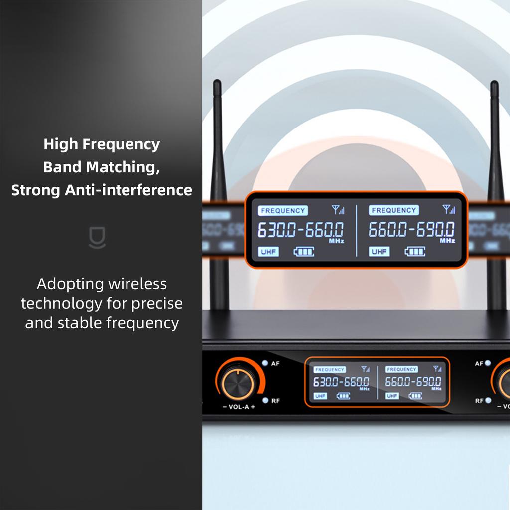 Профессиональная 16-канальная беспроводная портативная микрофонная система УВЧ, включающая 2 микрофона и приемник.