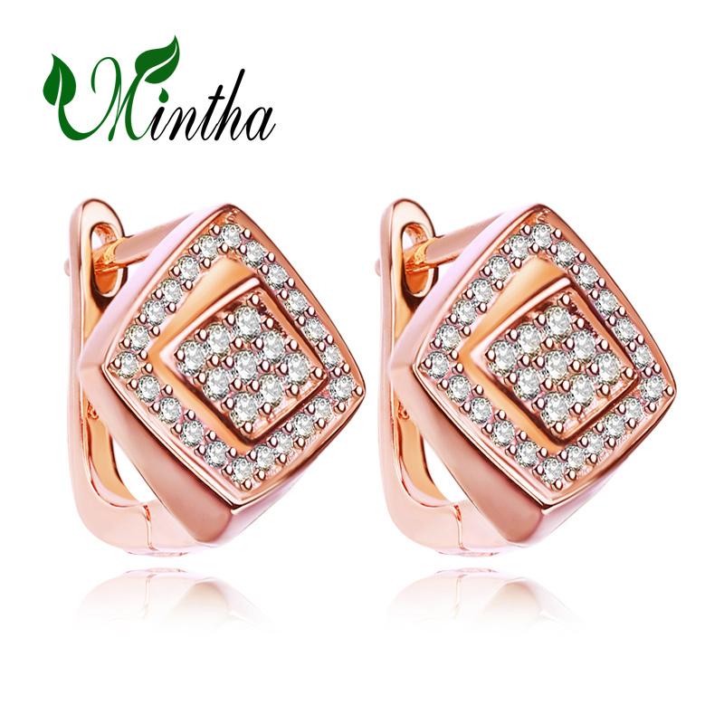 MINTHA геометрические серьги-клипсы, модные серьги цвета розового золота, свадебные повседневные модные украшения, серьги с полым цирконием для женщин, свадебные серьги
