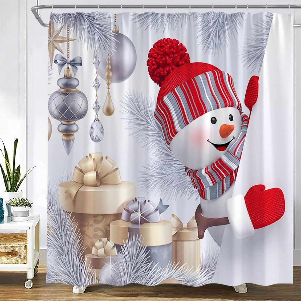 Рождественские занавески для душа, забавный снеговик, еловая ветка, подарок, Рождественский шар, новогодний праздник, ткань, домашний декор для ванной, наборы занавесок для ванной