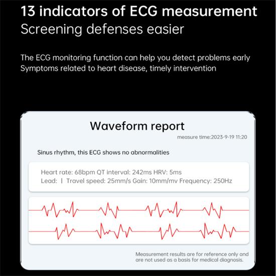 Поддерживает ручной мониторинг, ЭКГ в отведениях, анализ сигналов ЭКГ и рекомендации по обмену ЭКГ с семьей и друзьями.