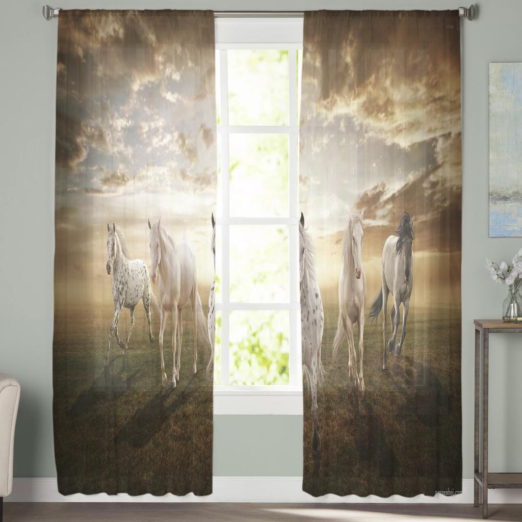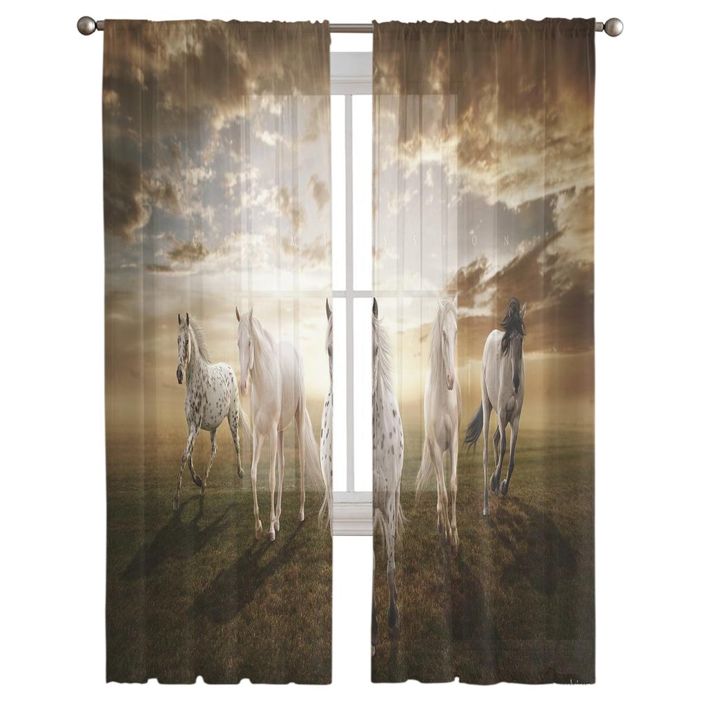 Прерии Белая Лошадь Облака Прозрачные Шторы Гостиная Окна Тюлевые Шторы Для Спальни Кухня Украшения Дома Вуаль Шторы