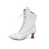 Женские короткие сапоги на высоком каблуке, однотонные остроконечные короткие сапоги в стиле ретро с резным узором, осенне-зимние новые большие женские ботинки