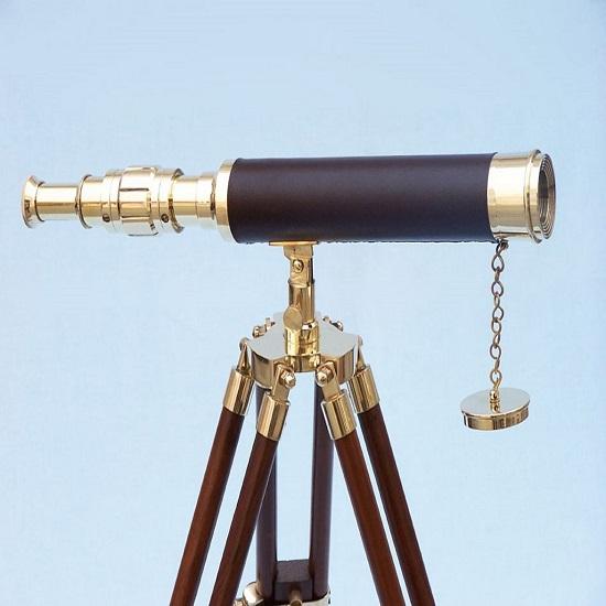 1. Неподвластный времени дизайн: Этот телескоп легко сочетает в себе классическую эстетику латуни и кожи, напоминающую об ушедшей эпохе морских исследований.. Его винтажная привлекательность мгновенно перенесет вас в романтизированный мир капитанов гавани и морских приключений.
