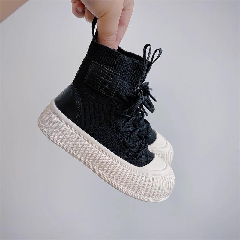 Новые осенние детские ботинки, обувь для девочек, вязаные иностранные носки, ботинки, удобные нескользящие одинарные ботинки для мальчиков,