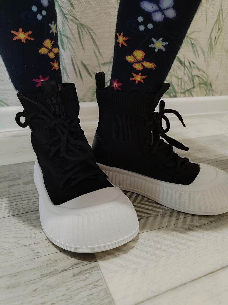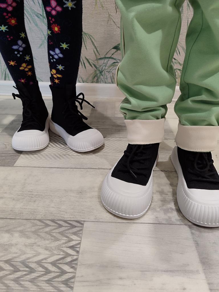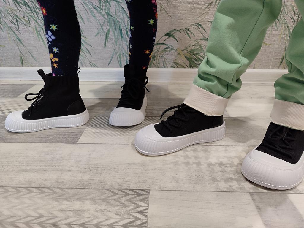 Удивительно, вроде по размерной сетке все норм, а вот для младшей дочки оказались немного велики. Очень не плохие в своем роде. Верх текстиль, шнурки для вида, так что одел и пошёл, подошва тонкая, потребуется стелька. Удобные.