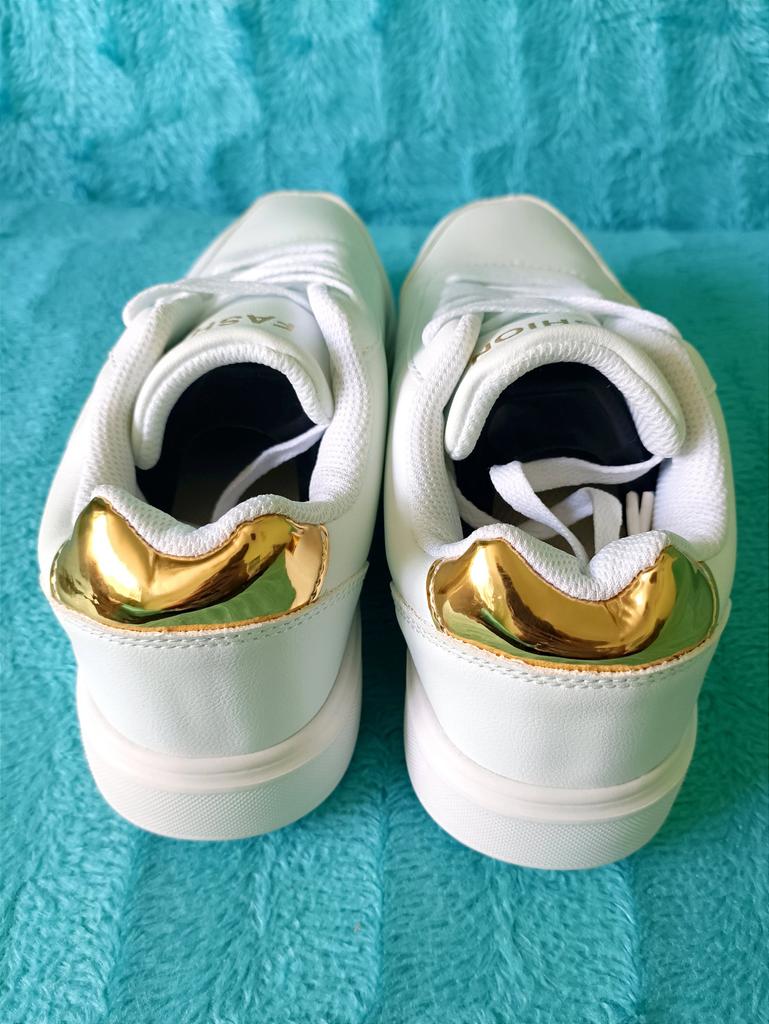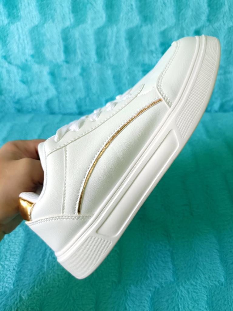 Красивые и удобные кроссовки! Белая мягкая кожа, небольшая платформа и привлекательная цена. Выбирая обувь, вы первым делом обращаете внимание на практичность, удобство и комфорт? Тогда спортивная обувь точно для вас! Хочу поделиться впечатлениями от покупки белых кроссовок. Изготовлены из мягкой искусственной кожи, внутри удобная стелька. Размер 35 отлично подошёл, даже есть небольшой запас. Ноги чувствуют себя комфортно, ничего не натирает. Уже успела их выгулить, осталась довольна. Идеальная погода для них - сухая, но не сильно жаркая, иначе ноги просто запарятся. А вот в дождь лучше точно не попадать! Если сами кроссовки можно протереть мокрой тряпочкой, то шнурки вам точно придётся стирать. Боюсь, что они потеряют свою белизну и товарный вид. Это говорит человек, у которого уже была белая спортивная обувь🤗 Сейчас самый разгар лета, период распродаж, действуют хорошие скидки. Друзья, делайте правильные покупки и ловите только выгодные предложения! Доставка месяц пришли в сборной посылке. Упаковка пыльник. При транспортировке был поврежден носок, осталась небольшая вмятина. Пока не ушла. Вообщем своей покупкой я очень довольна. Рекомендую.