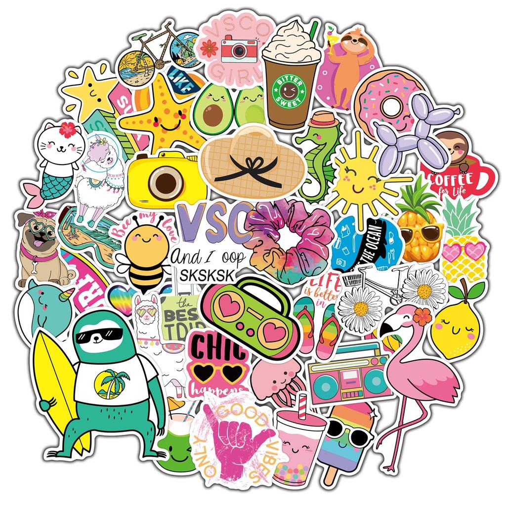 65 шт. VSCO девушка водонепроницаемые наклейки модные молодежные микс мультфильм Kawaii Декор для ноутбука бутылка воды гитара наклейки для спальни