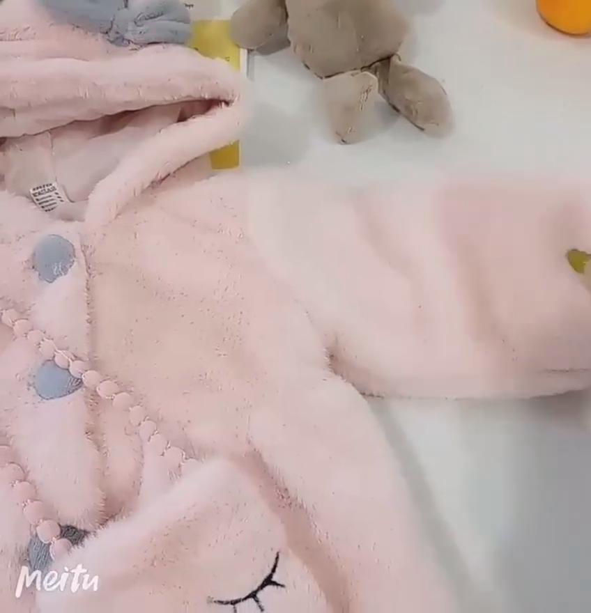 Плюшевая детская куртка с кроличьими ушками, милое рождественское пальто принцессы для девочек, осенне-зимняя теплая верхняя одежда с капюшоном, одежда для маленьких девочек