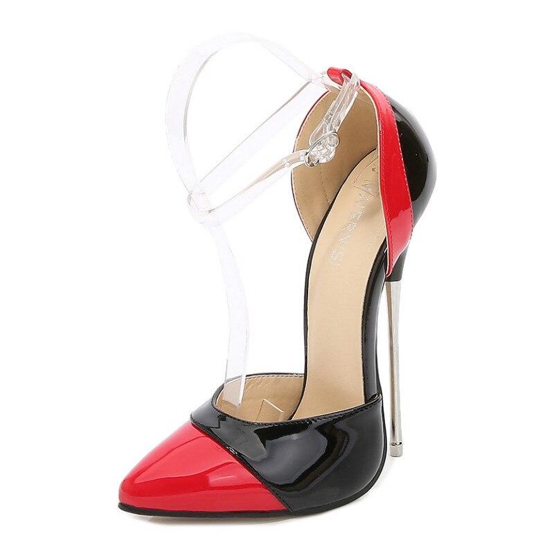 Женская обувь на высоком каблуке 16 см, модные разноцветные ремешки на щиколотке, размер 46, женская обувь, туфли-лодочки, моделирующие сандалии для вечеринок, WZ-A16-57