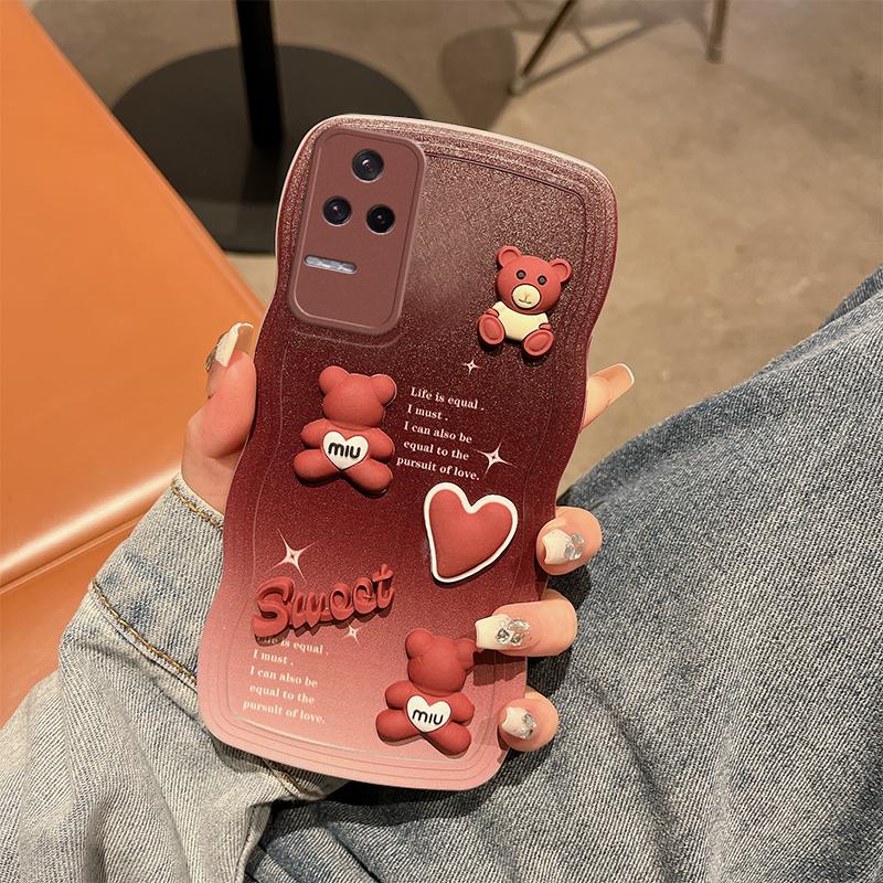 Для Xiaomi Redmi Note9 10 10s 10T Pro Poco F4 M5s M3 Pro 4G 5G чехол Мягкий силиконовый корпус Волнистая задняя крышка 3D стереоскопический чехол для телефона с милым медведем