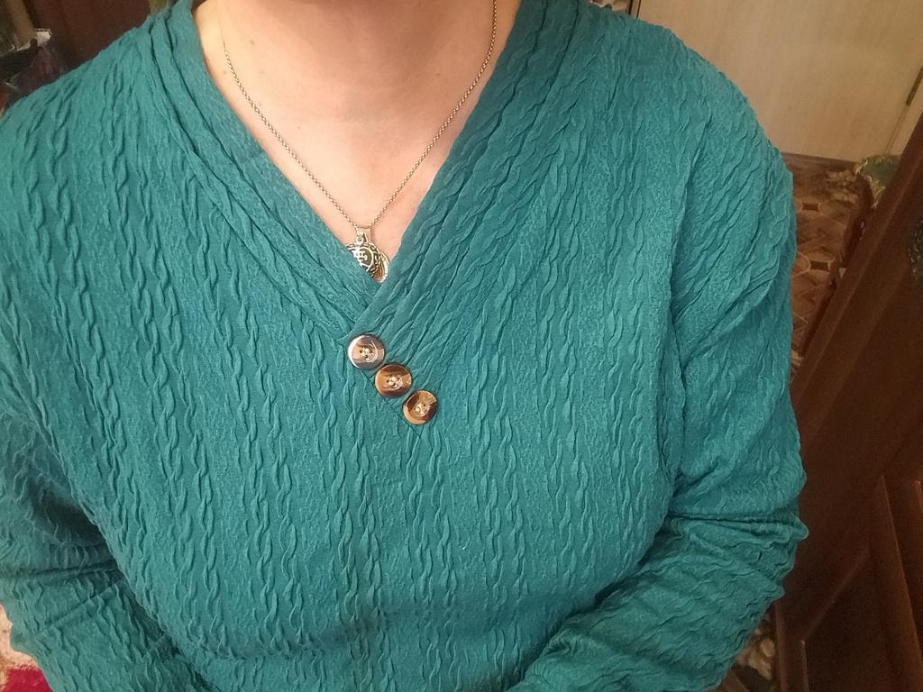 Цвет и материал кофты мне понравились, но пошив горловины спереди сильно отличается с двух сторон по ширине. Это большой дефект, который очень виден. И я даже не знаю, возьмутся ли его исправить в мастерской. Очень обидно получить понравившийся товар с таким браком. И почему продавец не проверяет товар перед отправкой.