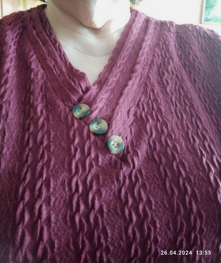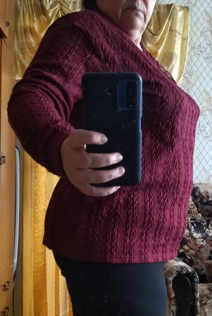 Кофта понравилась. Хорошо смотрится и приятная к телу. На мои параметры ОГ 110 ОТ 93 ОБ 112 села хорошо. Спасибо продавцу.