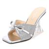 Красные сандалии на шпильке с неглубоким носком, модные модные тапочки большого размера на высоком каблуке, модные босоножки с открытым носком и бантом WZ
