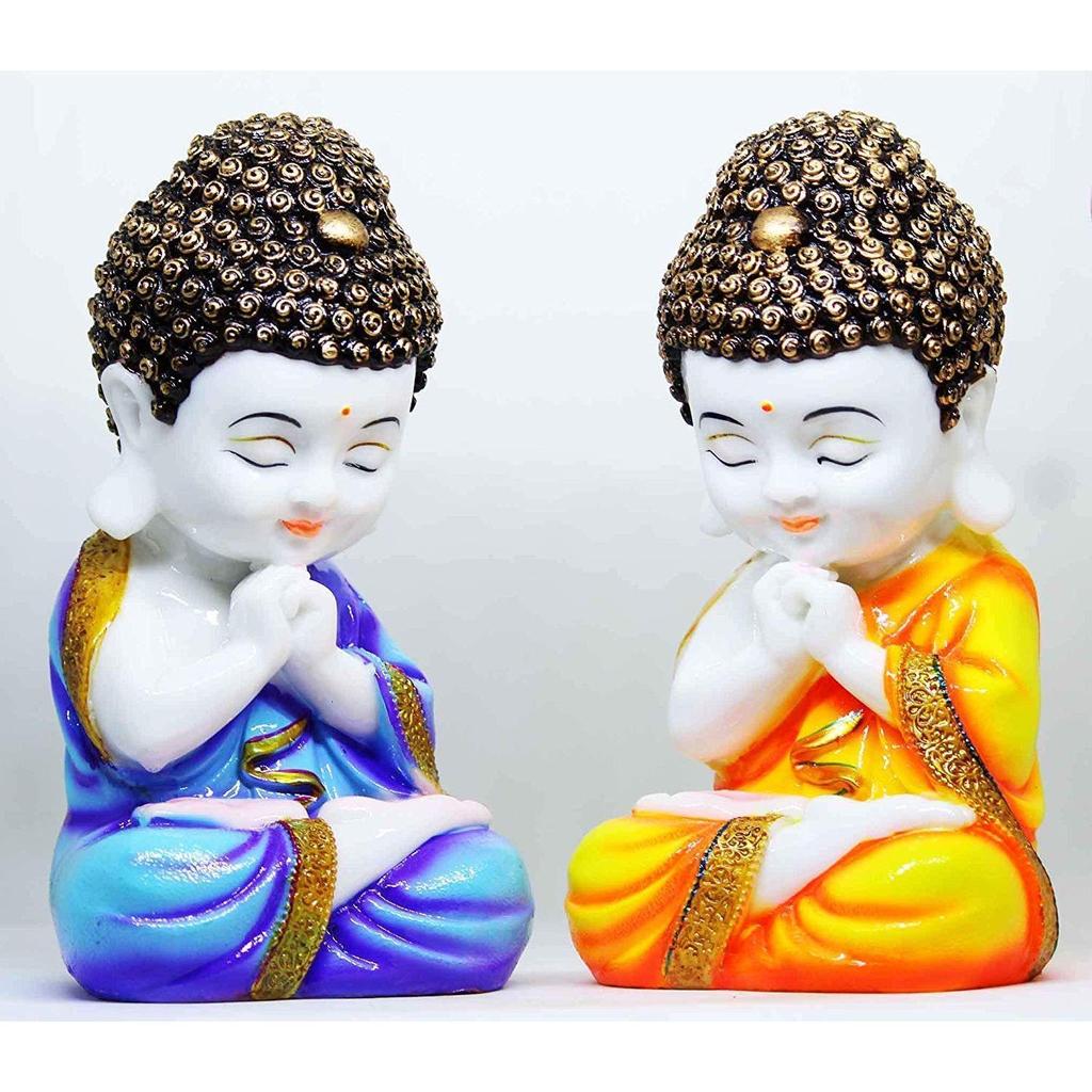 Ремесленный дом из смолы ручной работы, маленький ребенок-монах, Будда, декоративный экспонат, идол для домашнего декора и офиса, возврат Дивали, гостиная, спальня (Синий и желтый, 20 см), Набор из 2