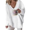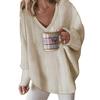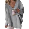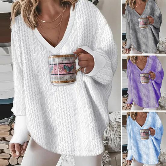 Универсальный стиль: Этот свитер с трикотажным верхом, длинными рукавами, V-образным вырезом и плетеным дизайном можно легко сочетать с джинсами, шортами, леггинсами или юбками, что открывает безграничные возможности для нарядов.