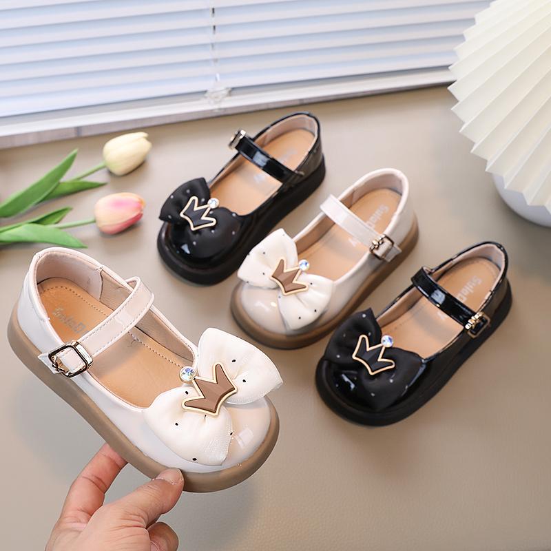 Новинка 2023 года, детские неглубокие лоферы для девочек, Нескользящие детские модные туфли принцессы с круглым носком с короной на липучке, Прямая доставка