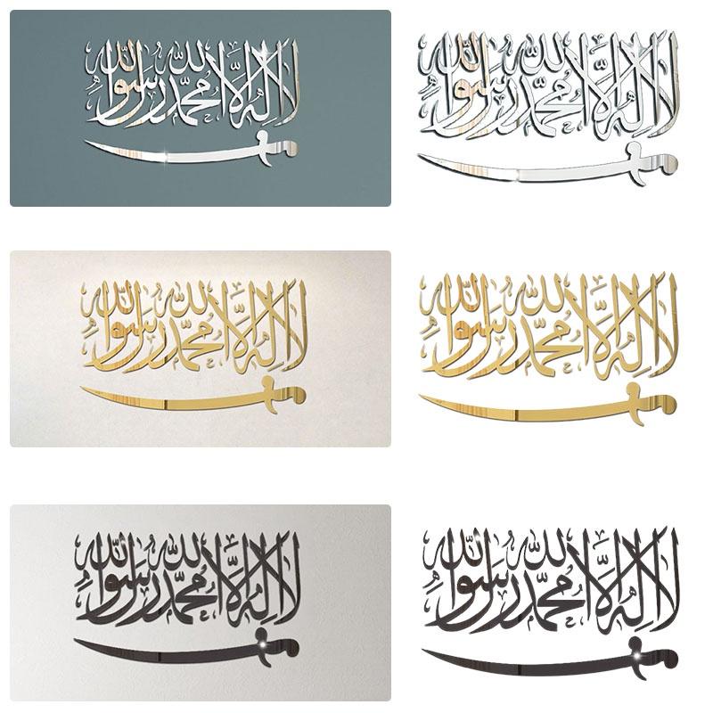 3D акриловое зеркало, украшение на стену, наклейка, исламское мусульманское Писание, каллиграфия, зеркальные наклейки, украшение дома
