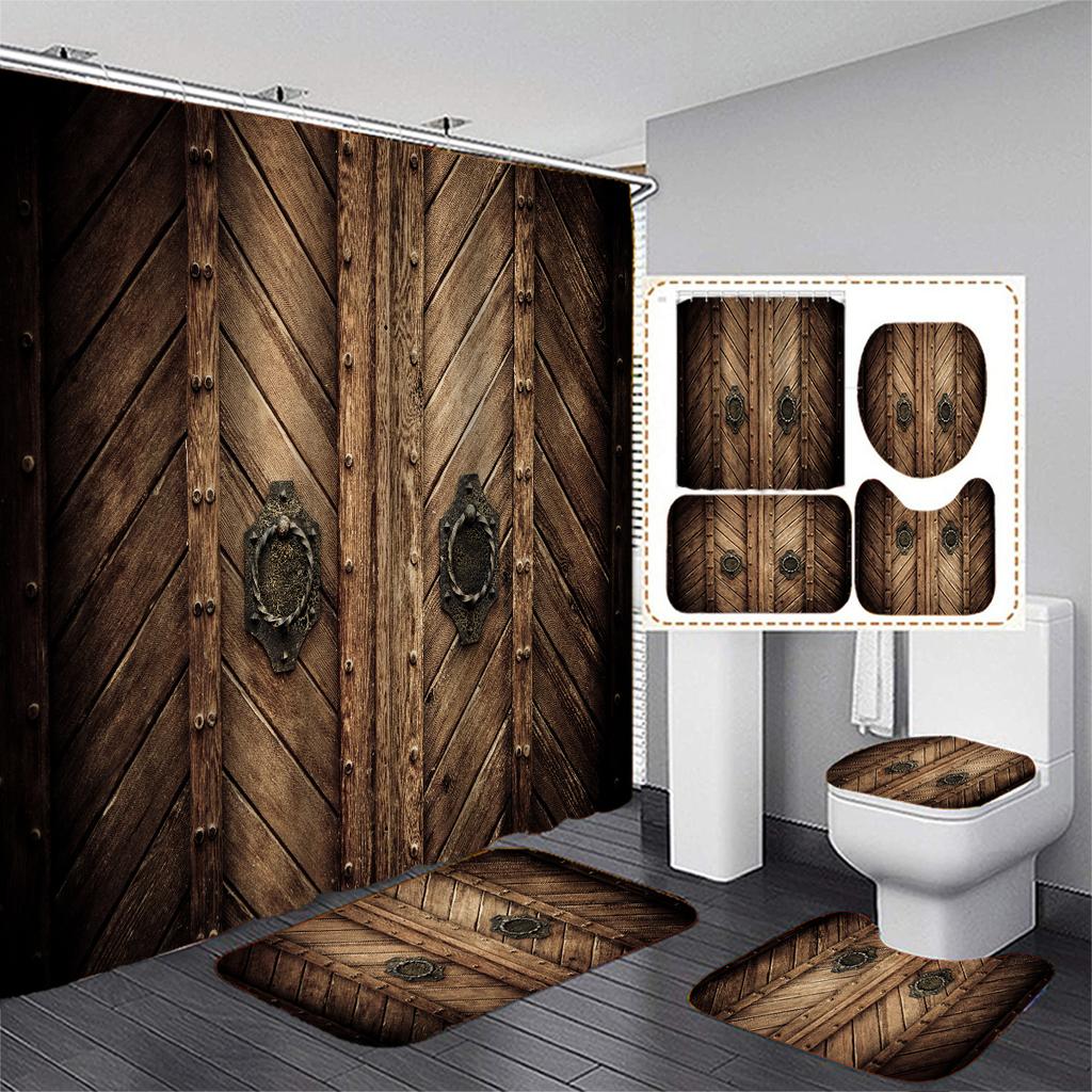 4 шт. старые деревянные занавески для душа в гараже, наборы для ванной комнаты, нескользящие коврики для ванной комнаты, крышка для унитаза, коврик для ванной, набор для ванной комнаты