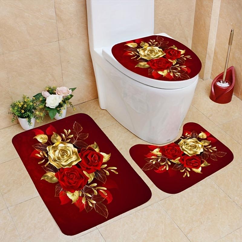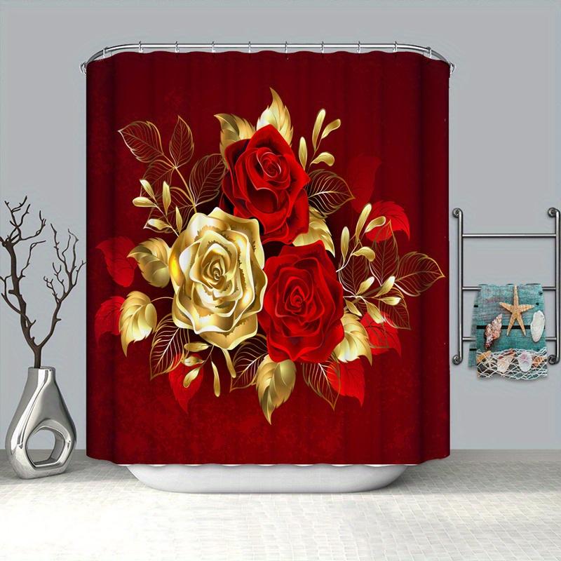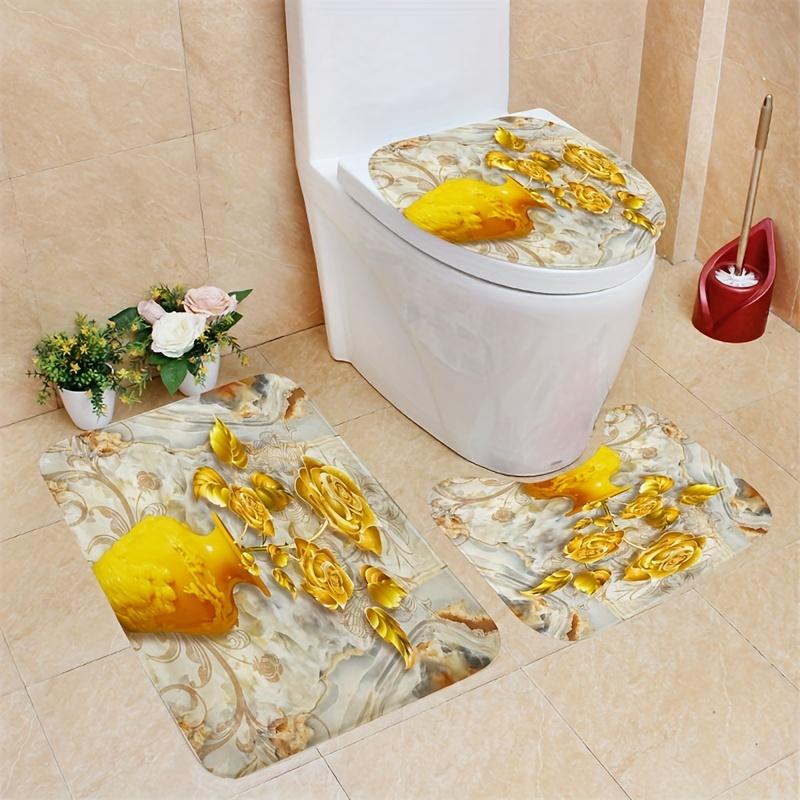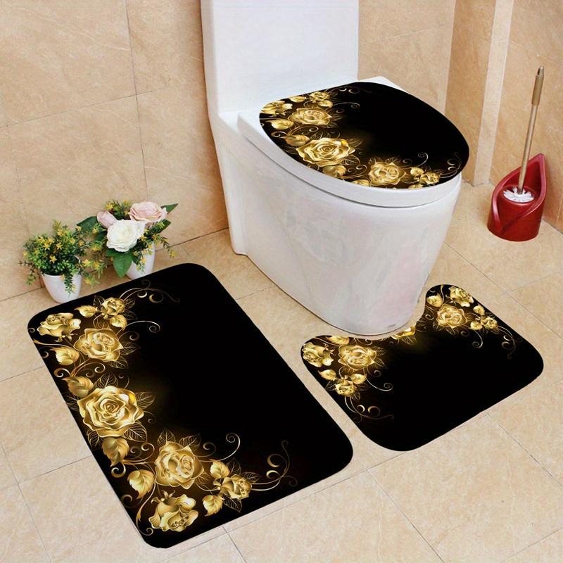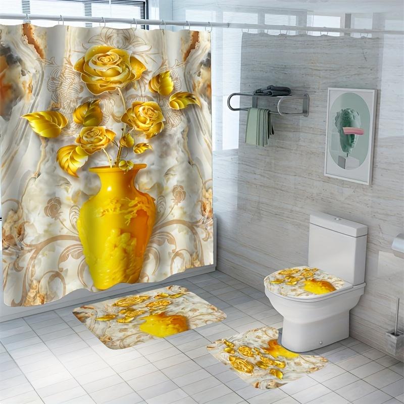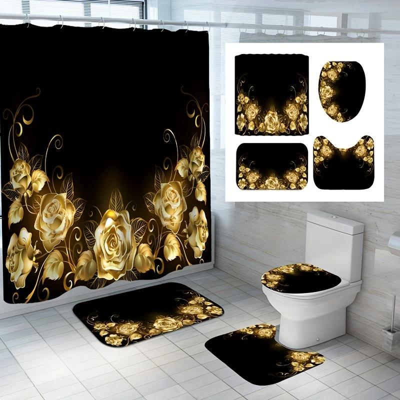 4 шт., наборы занавесок для душа с рисунком золотой розы для ванной комнаты, нескользящие коврики для ванной комнаты, крышка для унитаза, коврик для ванной, набор для ванной комнаты