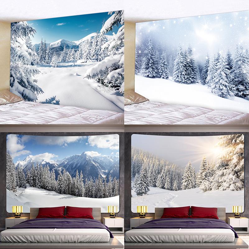 Лес Рождественская елка Снежная сцена Домашний декор Художественный гобелен Богемная психоделическая сцена Настенная подвеска на стену спальни