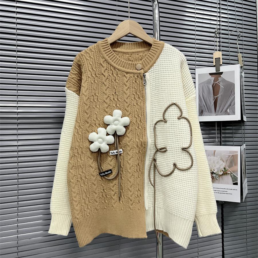 Осенне-зимний женский свитер, дизайн, сочетание цветов, вязаный кардиган с трехмерными цветами, свободный нежный мягкий свитер