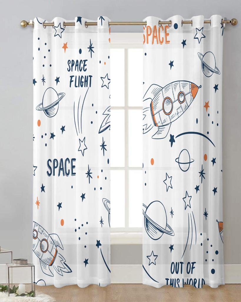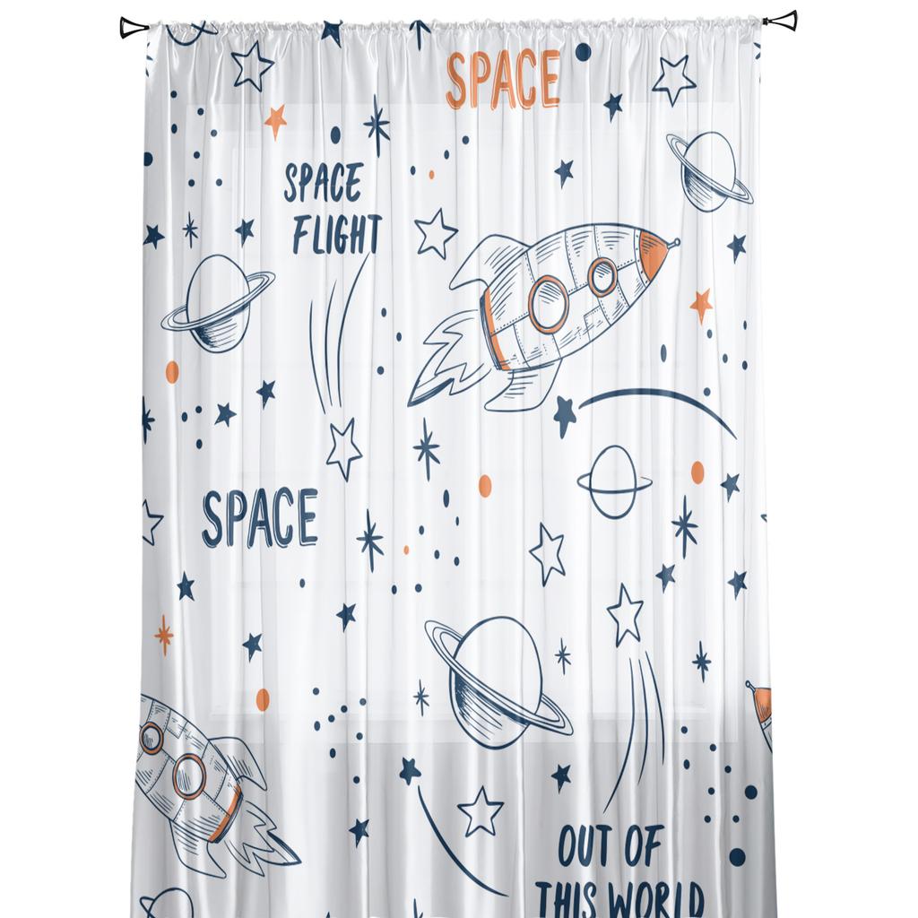 Ракета Летающий мультфильм Вселенная Космос Белый Тюль Прозрачные оконные шторы для гостиной Спальня Вуаль из органзы Шторы Портьеры