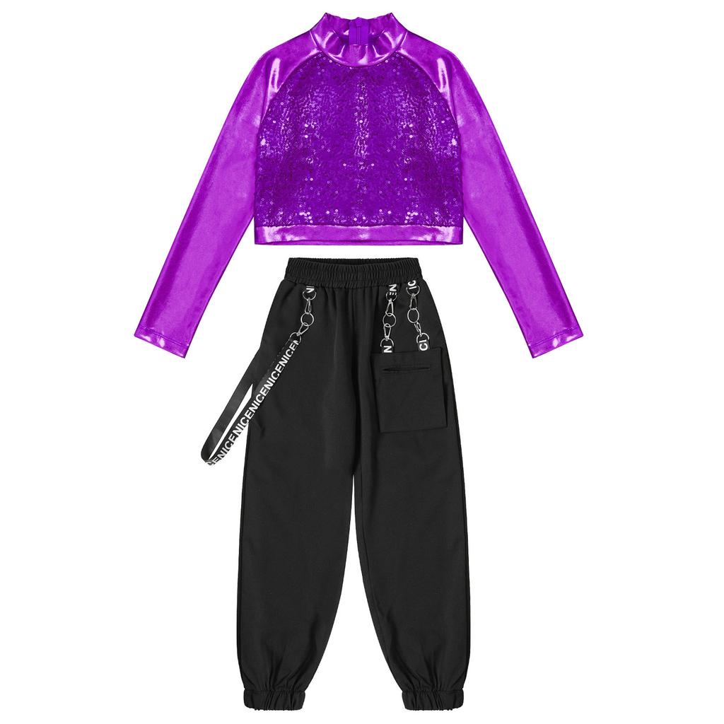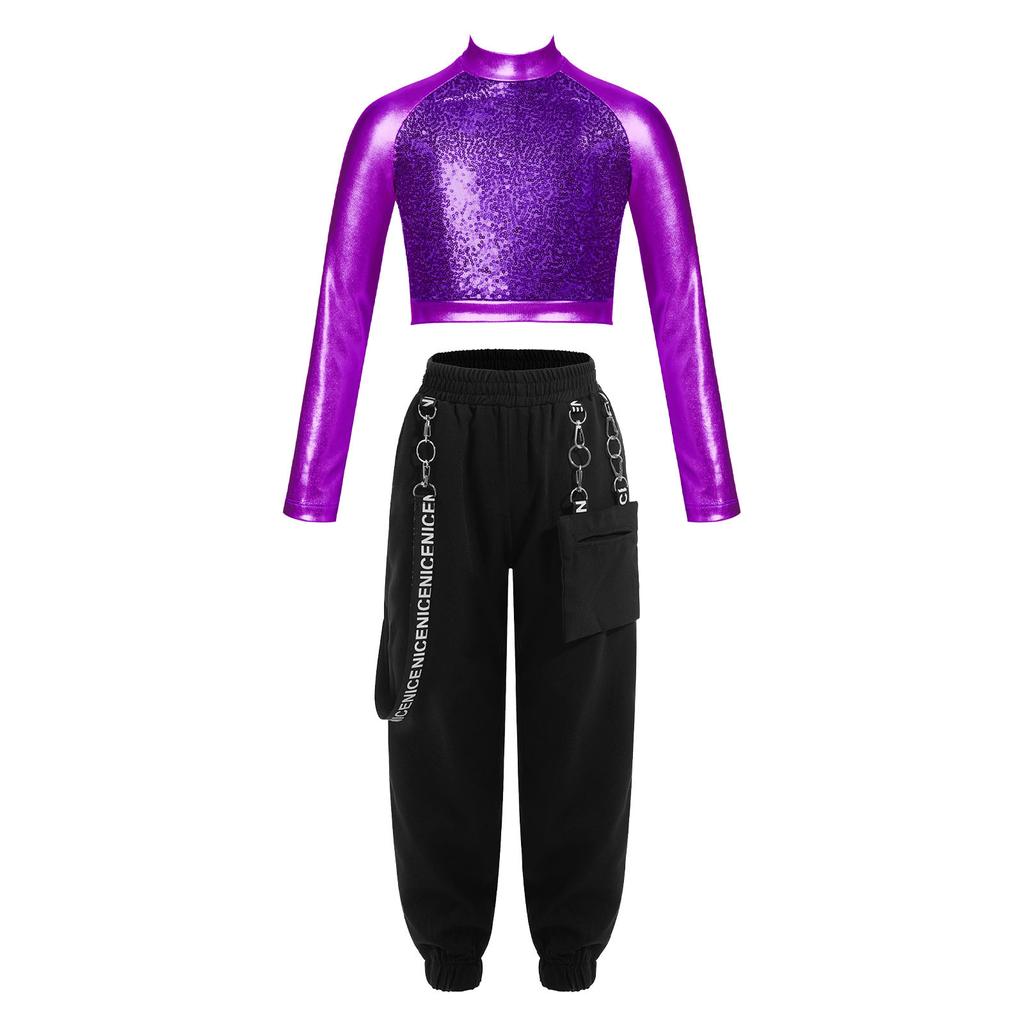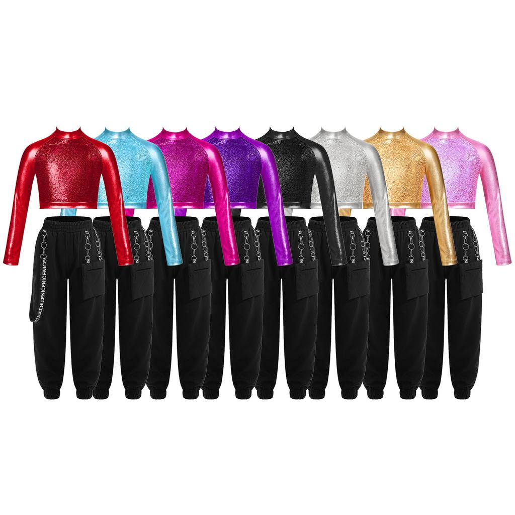 Комплект одежды для девочек, укороченный топ с длинными рукавами и длинными брюками, повседневный костюм из 2 предметов, детская танцевальная одежда