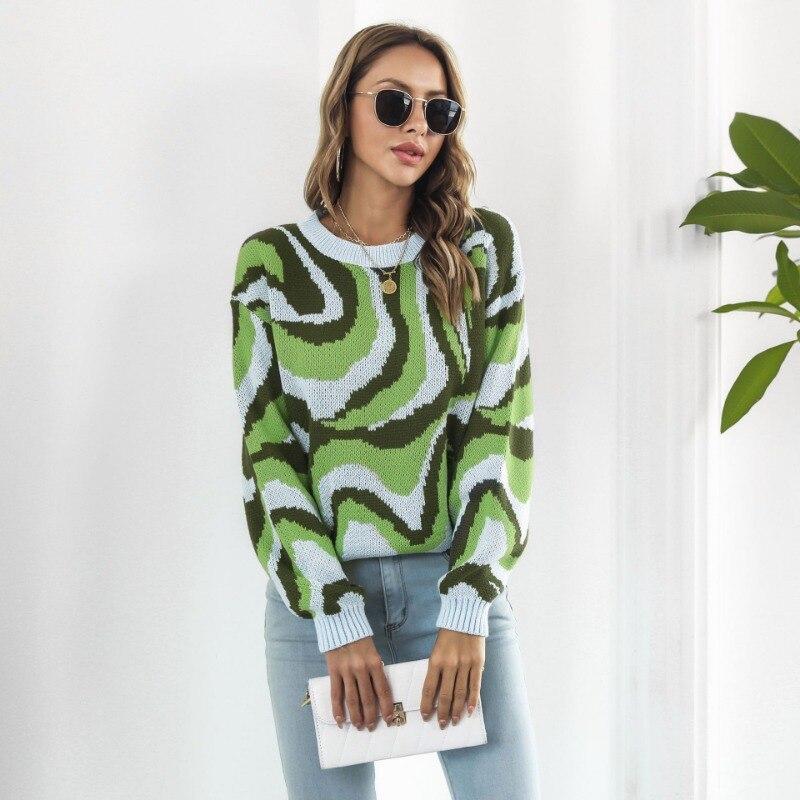 Осенний полосатый вязаный свитер, пуловер, женский зимний свитер с длинным рукавом, свободный винтажный джемпер с круглым вырезом, свитера 29385