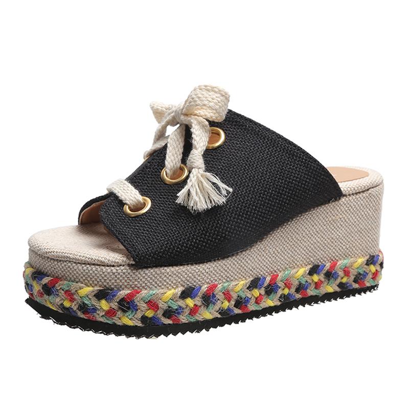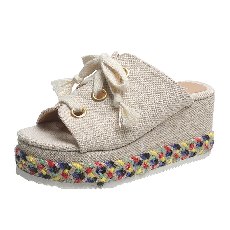 Сандалии на танкетке со шнуровкой, плетеные из пеньковой веревки, женские парусиновые тапочки на массивной платформе, женские 2022 летние модные шлепанцы на толстой подошве