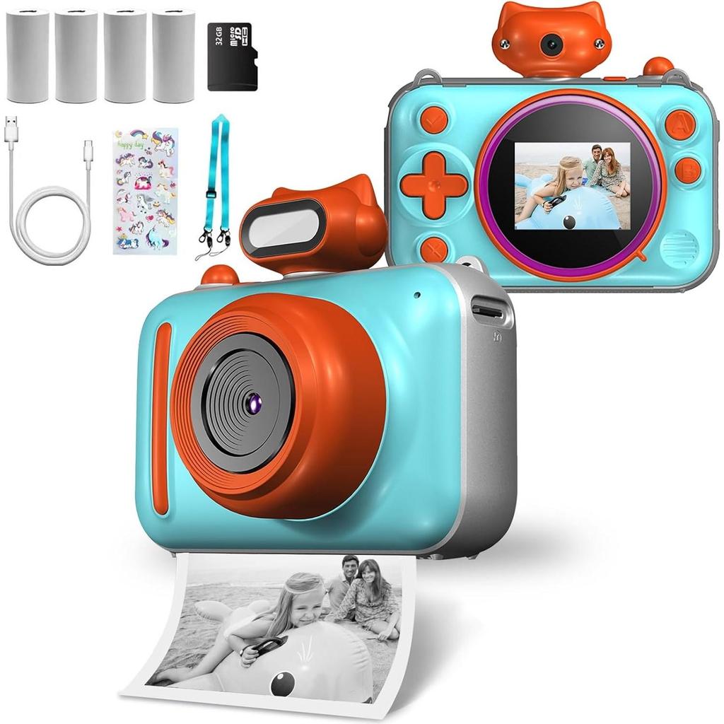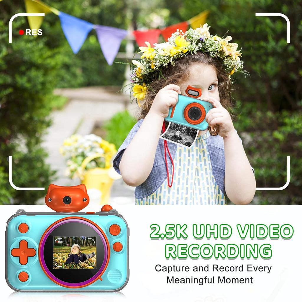 📸【Цифровая камера для селфи и видео с умной заполняющей подсветкой】Эта детская камера моментальной печати оснащена двумя передними и задними двойными объективами и поддерживает селфи.. Снимайте высококачественные фотографии с разрешением до 48,0 мегапикселей и видео 2,5K UHD.. Эта камера мгновенной печати, которая печатает фотографии, поддерживает замедленную съемку и 10-кратный цифровой зум.. Встроенный интеллектуальный заполняющий свет позволяет запечатлеть чудесный момент в любое время и в любом месте.