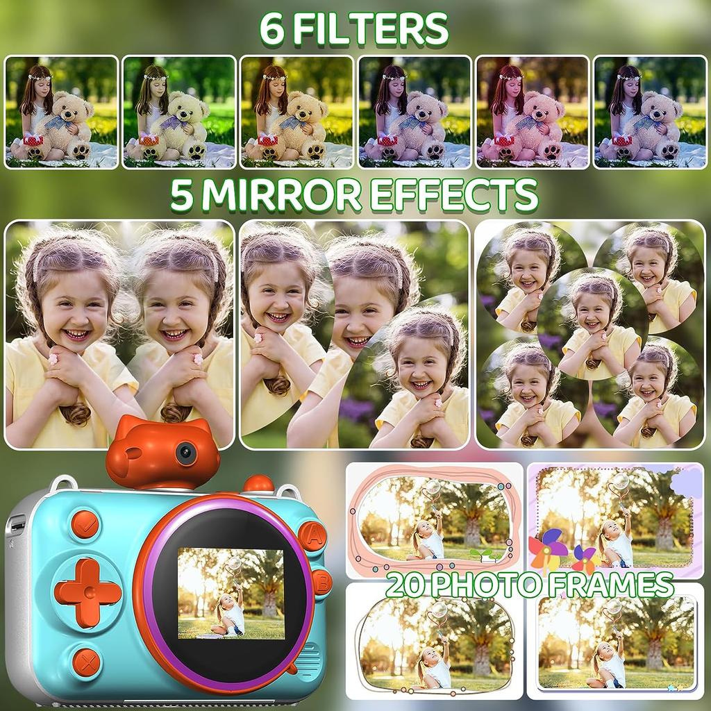 🎁【Отличный подарок и игрушка для детей】Идеальные подарки на день рождения, Новый год, Рождество, День Благодарения, праздники и поездки для девочек и мальчиков 3, 4, 5, 6, 7, 8, 9, 10, 11, 12 лет.. С помощью 5 фильтров, 8 зеркальных эффектов, 20 мультяшных рамок дети могут украсить картинки своим воображением и творчеством.. Кроме того, эта детская камера оснащена 8 играми и функцией MP3. Ваши дети могут наслаждаться музыкой и играми.. Это многофункциональная камера.