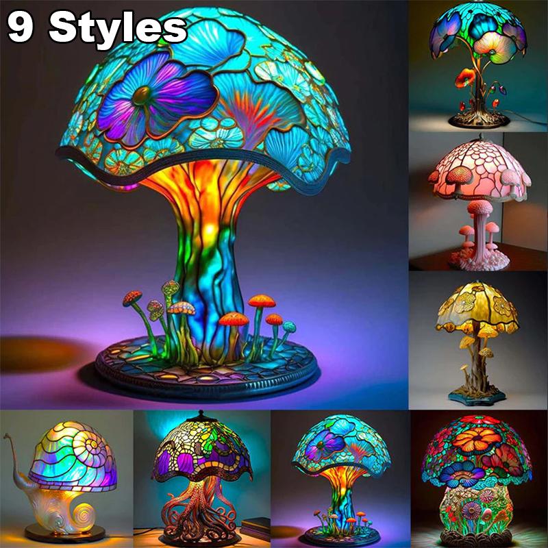 Креативные настольные лампы серии Stained Plant из смолы, красочные прикроватные тумбочки для спальни, цветы, грибы, ретро настольная ночная лампа, атмосферный свет