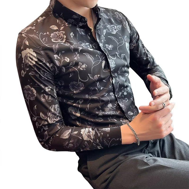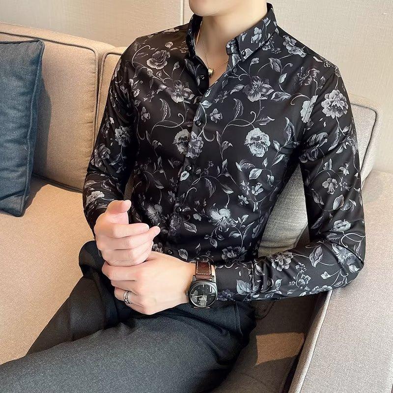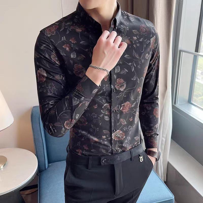 Корейская версия повседневной рубашки с длинными рукавами и цветочным принтом. Мужская повседневная деловая рубашка с большим остроконечным воротником и длинными рукавами с цветочным принтом. Senior Sense Of Inch.