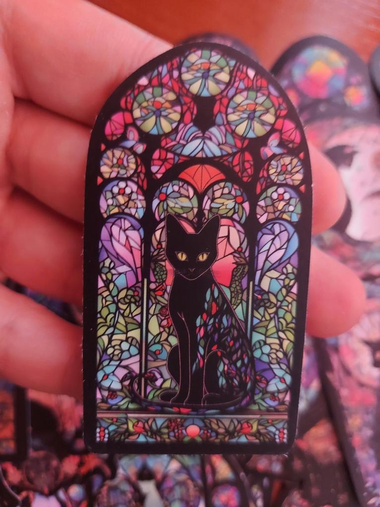 Красочные мультяшные готические наклейки с черным котом и мотивами цветов и окон - набор из 10 или 50 штук для DIY проектов, багажа и многого другого