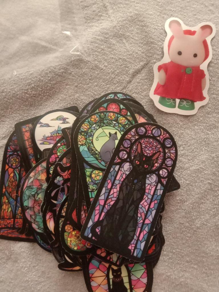 53 стикера, на готическую тему. Плюс подарок - ещё один стикер, но уже не в тему. Правда, я заказывала другие стикеры, но и от этих в полном восторге, а то что хотела закажу ещё раз. Рекомендую! Спасибо продавцу и Джум