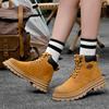 Мужские и женские ботинки. Высокие рабочие ботинки из натуральной кожи. Желтые ботинки осень-зима.