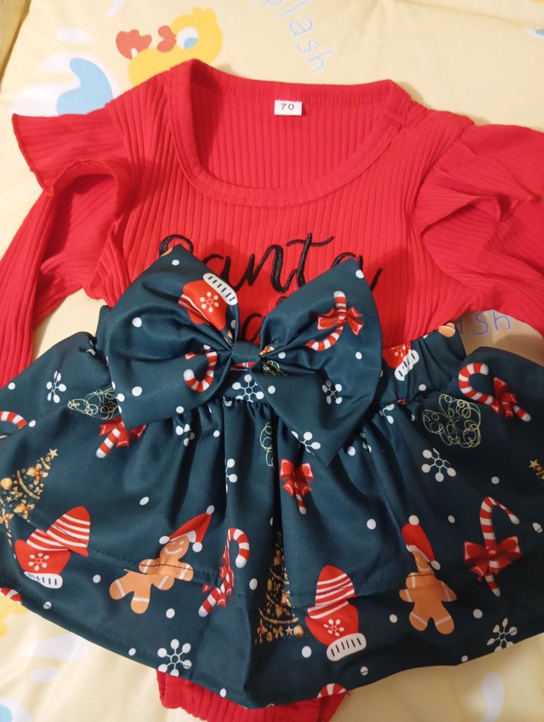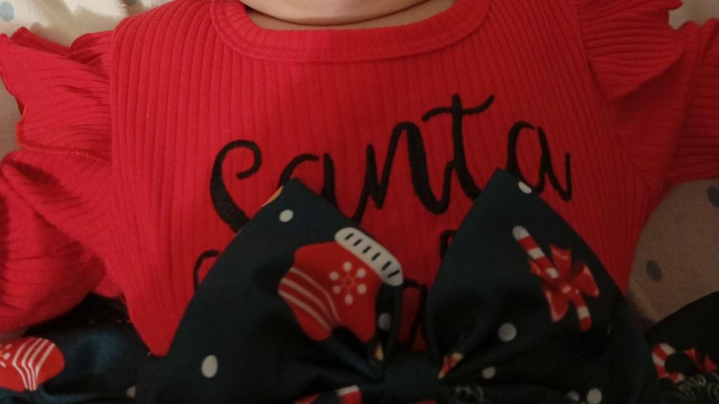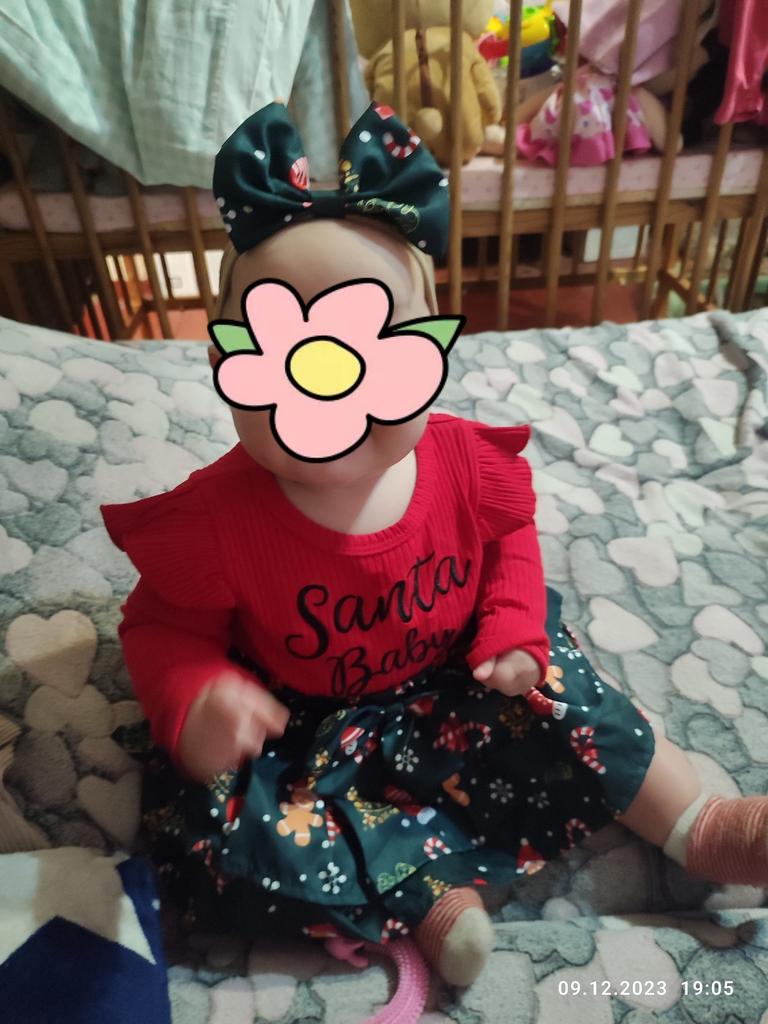 Очень красивый нарядный бодик и резиночка на голову, как на фото ярко, ткань красная приятная к телу, швы не торчат, единственный минус маловат, нам 8 месяцев но весит ребёнок не много и длинненькая и прям в длину коротковат, возможно кто на 6 или 7 месяцев и небольшой будет отлично