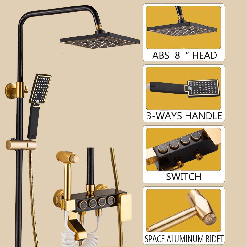Набор смесителей для душа черного золота, космический алюминиевый смеситель для душа с дождевой водой, смеситель для душа с биде, смеситель для горячей и холодной воды — купить товар онлайн с бесплатной доставкой по всему миру!