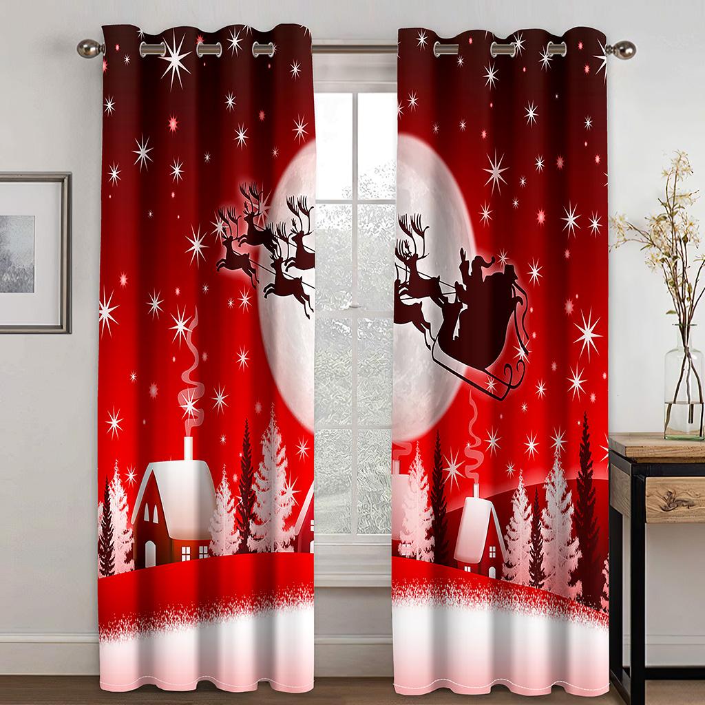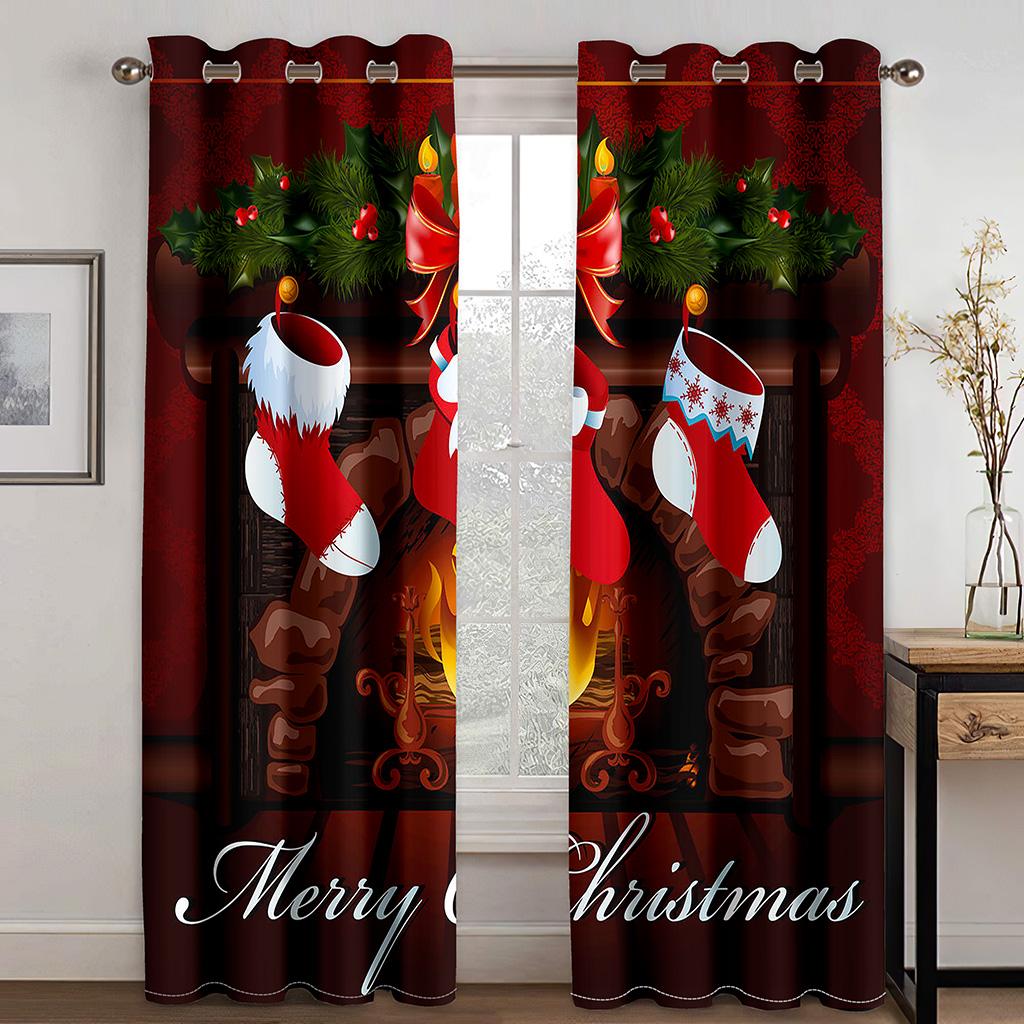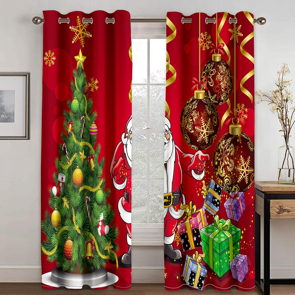 Мультфильм Санта-Клаус Рождественская елка красное золото оконные шторы для детей Спальня Гостиная Ванная комната Кухня Дверь Холл Домашний декор