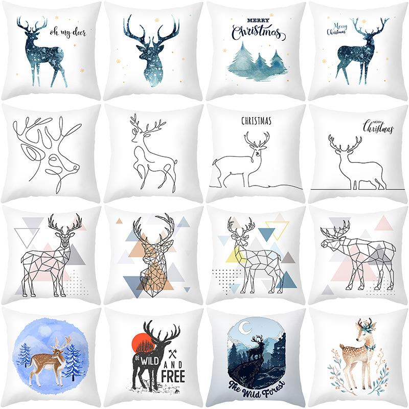 Рождественские наволочки с простыми печатными линиями, серия «Олень», наволочки для дивана и офиса, трансграничные