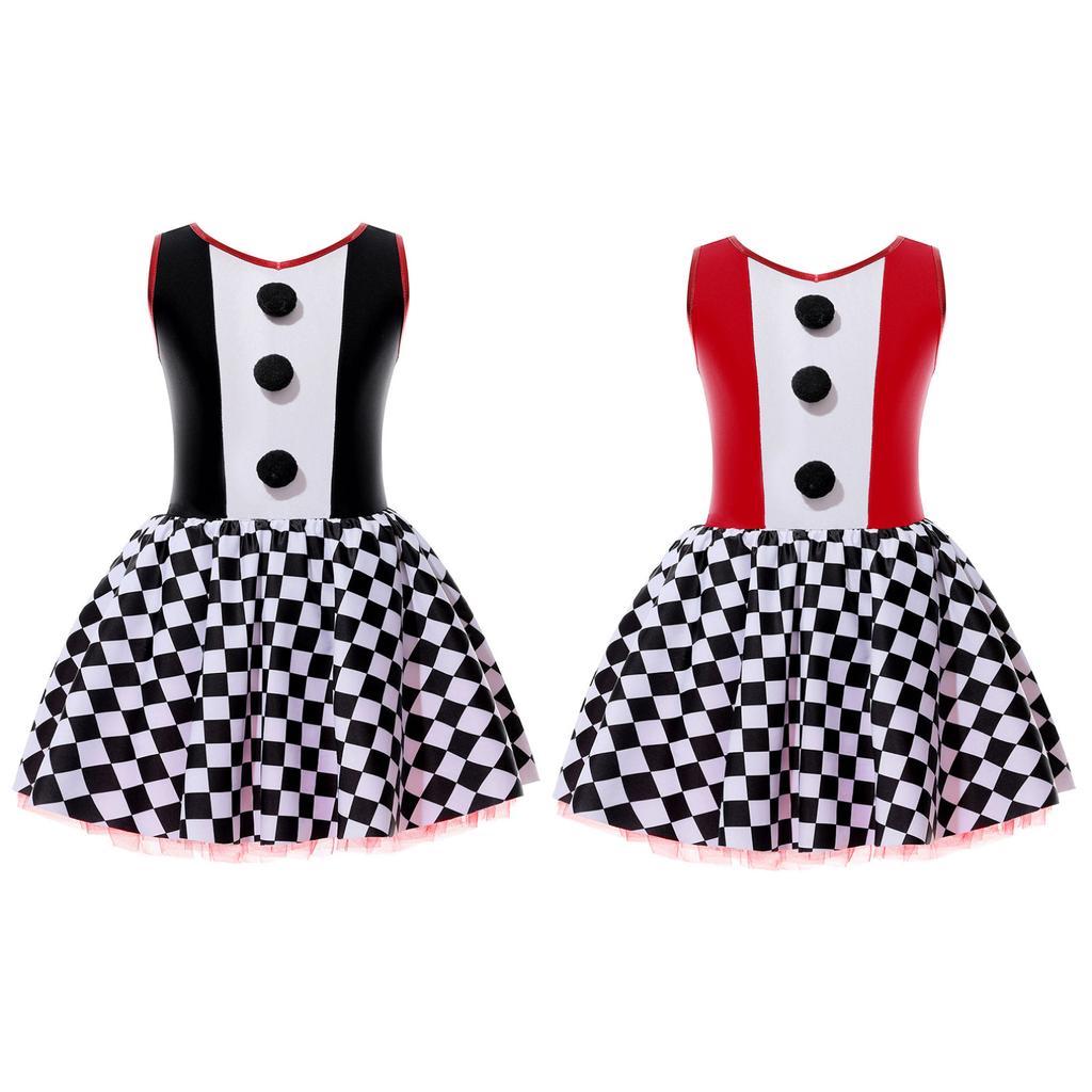 Детский костюм клоуна для девочек, платье в шахматную клетку без рукавов для Хэллоуина, карнавала, вечерние, балетное платье для косплея