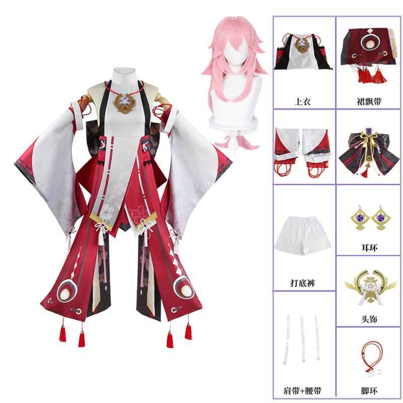 Костюм для косплея Yae Miko, аниме Guuji Yae, платье с париком, наряд для вечеринки, костюмы на Хэллоуин для женщин