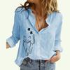 Женская модная рубашка с воротником-лацканом, весна-осень, топ из хлопка и льна, повседневные блузки с принтом — купить товар онлайн с бесплатной доставкой по всему миру!