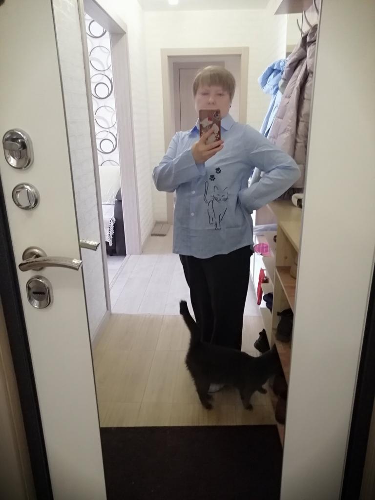 Доставка 1 месяц до почтового отделения Челябинска. Рубашка отличная. Качество ткани 💥. Хлопок и 5% полиэстера. Ткань похожа на марлевку. Наклейка качественная. Выдержала машинную часовую стирку при 40 градусах. При моем росте 155 и размере 50 XL сидит как на фото. Не оверсайз. Мне нравится. После стирки если и подсела, то не значительно. Я не заметила. Единственное, не понравился рукав без манжета. Но так ка мне длинноват подошью и вставлю резиночку. Но это на мой вкус так. Продавца рекомендую.